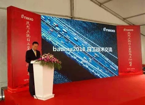 2018年11月27日,以“智造愿景,縱橫大觀 ”為主題的bauma CHINA 2018(上海寶馬工程機(jī)械展)在上海新國(guó)際博覽中心盛大開(kāi)幕。作為組委會(huì)的戰(zhàn)略合作伙伴,日工(上海)工程機(jī)械有限公司針對(duì)中國(guó)市場(chǎng)最新研發(fā)的環(huán)保型瀝青混凝土拌和設(shè)備業(yè)精彩亮相上海寶馬展,向全場(chǎng)觀眾完美詮釋了未來(lái)環(huán)保型瀝青拌和站的特點(diǎn)及性能,尤其是其在浙江嘉興山東路橋杭州灣大橋項(xiàng)目應(yīng)用的4000型環(huán)保設(shè)備+160熱再生設(shè)備更是引起了現(xiàn)場(chǎng)觀眾的強(qiáng)烈共鳴,來(lái)自全國(guó)各地的客戶及媒體代表共計(jì)300余人參加了日工新品發(fā)布會(huì)。今年的寶馬展,正值日工建廠百年之際,日工(上海)工程機(jī)械有限公司董事、常務(wù)副總經(jīng)理兼北京事務(wù)所所長(zhǎng)陳向杰主持了會(huì)議。